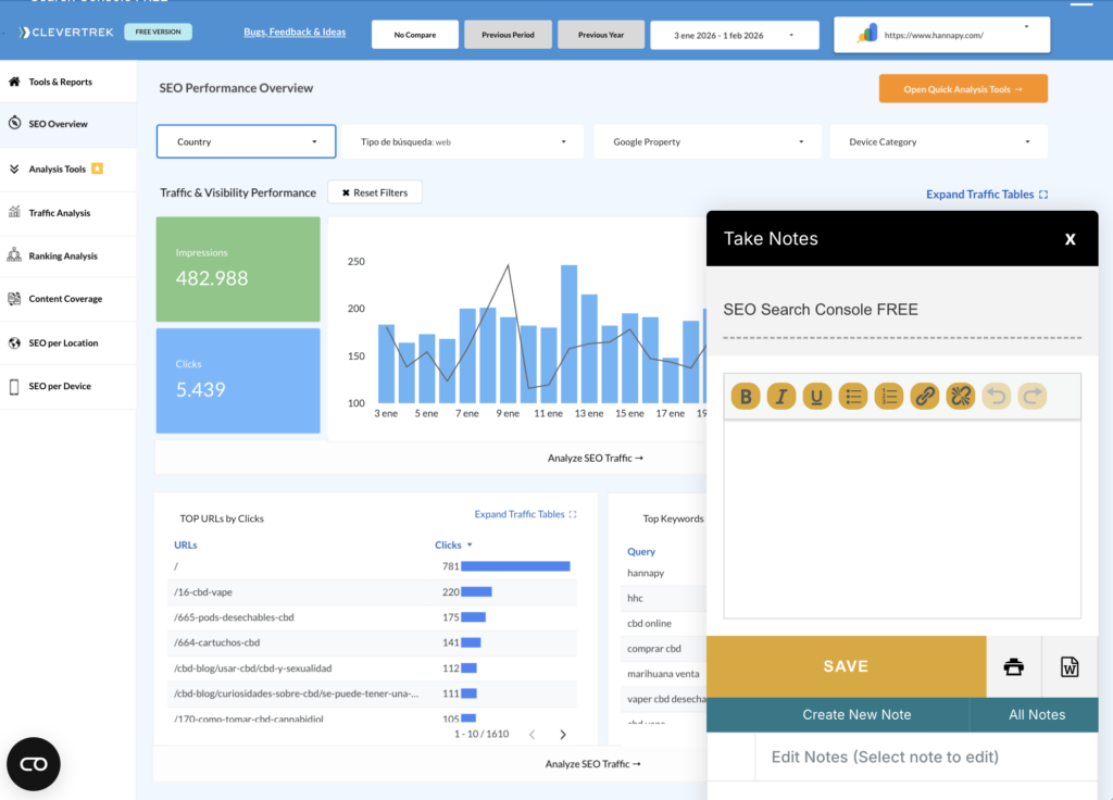 Continue with Google Free Forever Access Level No Card Required to Start Analyzing Upgrade or Switch Whenever Audit suite to get clear answers and make faster decisions SEO Summaries and Overviews SEO Website Visibility SEO Coverage Analysis Keyword + URL Ranking Control Take & Save Notes While Analyzing Mobile-Friendly Version Channel Expert Support Check All Features Continue with Google GET FREE ACCESS LEVEL "We are committed to improving analysis effectiveness, democratizing data-driven working methodologies, and creating clear analysis conversations between teams." Fernando Beneitez Tools Designer & Channel Expert All Features All In One SEO Audit Tools All In One Navigational Analysis Mobile-Friendly Version My Notes Clevertrek Function SEO Summaries & Overviews SEO Overview SEO Traffic Summary SEO Coverage Analysis Keyword + URL Ranking Control SEO Analysis Tools Up & Down Multi-Period Control Clever Advanced Rank Tracking Coverage Priorization CTR Opportunity Analysis Keyword Cannibalization Checker Second Page Opportunity Finder Exportable Data Table LET'S GET FREE ACCESS LEVEL No Card Required for FREE LEVEL ACCESS Book a 15 min Demo with your Data * Read more about Access Levels POPULAR TO START * Read more about Access Levels * Read more about Access Levels Branded My Account Panel Branded Dashboards & Tools Custom Metrics & Dimensions Custom Data Flows Design Personal Analytics Consultant Workshops & Training Service Externalization Express Urgency Audits